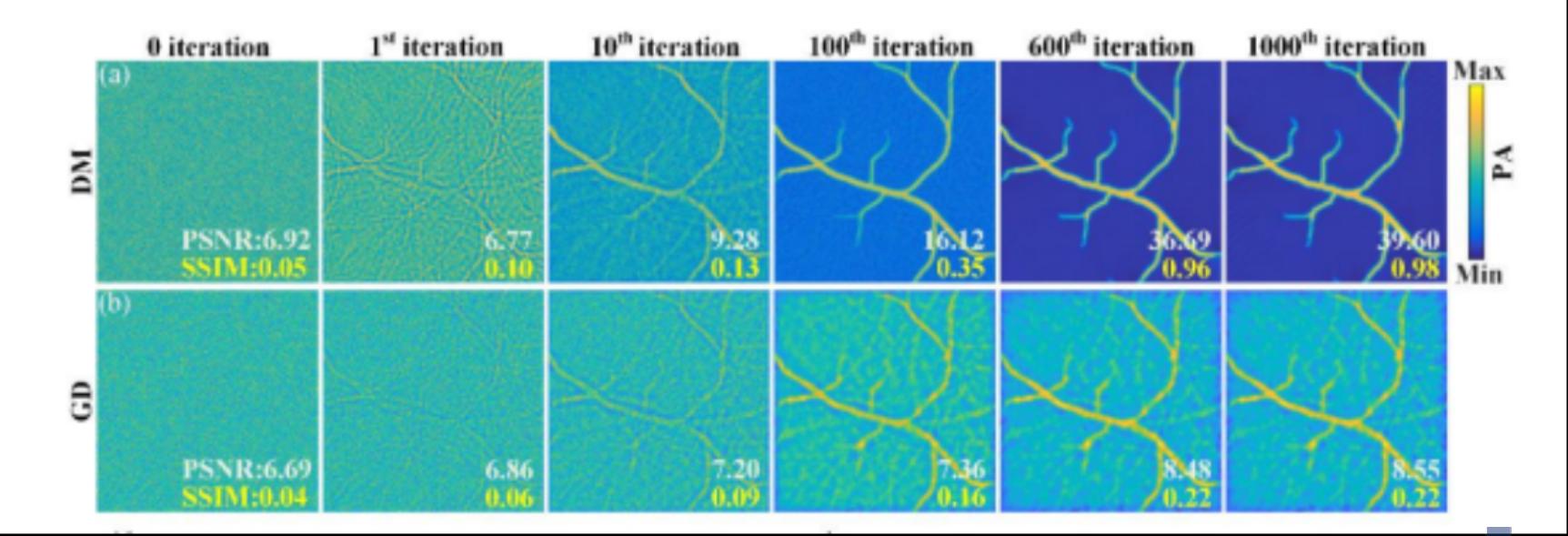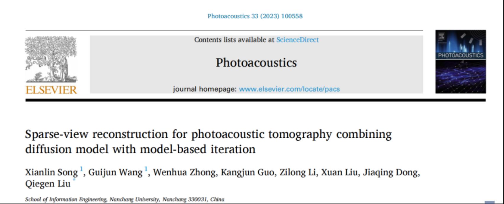 在光声断层成像方面,光声领域顶级国际期刊Photoacoustics(一区TOP, IF="7.9)刊登了宋贤林与2021级通信工程专业硕士研究生汪贵军共同完成的名为Sparse-view reconstruction for photoacoustic tomography combining diffusion model with model-based iteration(结合扩散模型和模型迭代的光声断层稀疏重建)的论文,该成果在刘且根教授的指导下完成。