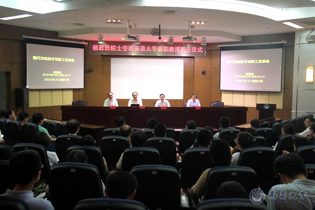 褚君浩表示,十分高兴加入具有深厚历史底蕴的南昌大学,希望今后能够为学校一流学科建设作出自己的贡献。他结合自身求学与工作经历,向师生介绍了自己在材料科学方面的研究方向及成果,阐述了材料科学在现代光电技术与新工业革命中的重要性。他勉励学子,在新时代下要做一名有理想、有自信的新青年,工作学习中要学会找到自己的兴趣点,面对困难要坚持不懈、全力以赴,切忌急功近利。