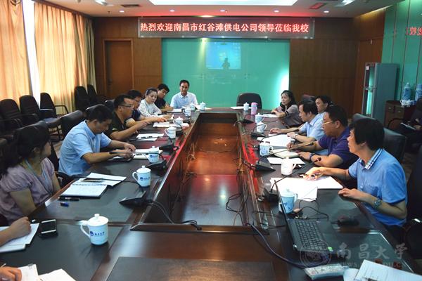 本网讯(后勤保障部)9月11日下午,南昌市供电公司红谷滩分局局长欧阳慧泉一行9人来校会商电力保障工作。副校长朱小理出席座谈。
