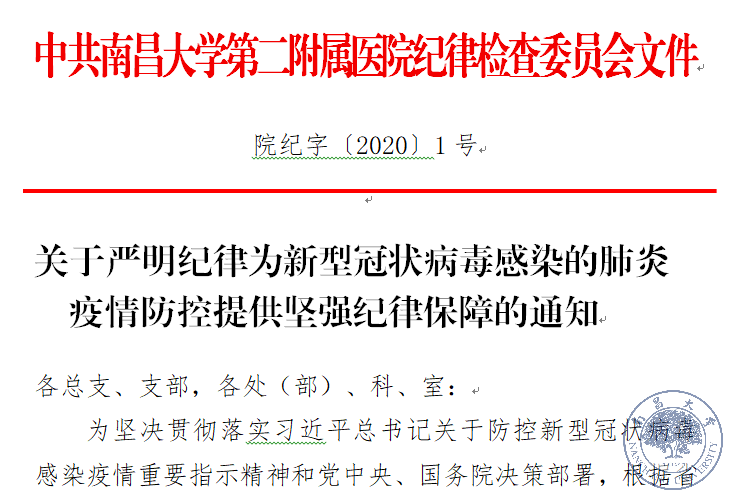 自疫情防控阻击战打响以来,南昌大学二附院纪检干部迅速行动,冲锋在前,把疫情防控监督检查工作作为检验初心使命的“主战场”,以严明的纪律和强有力的监督,压紧压实疫情防控责任,为打赢疫情防控阻击战提供坚强的纪律保障。