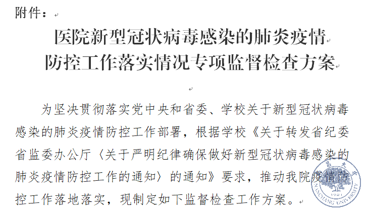 疫情就是命令,监督就是责任。疫情发生以来,院纪委深入贯彻习近平总书记关于疫情防控的重要指示批示精神以及省委、学校和医院有关要求,迅速进入“备战状态”。1月25日,院纪委下发《关于严明纪律为新型冠状病毒感染的肺炎疫情防控提供坚强纪律保障的通知》,强调对在疫情防控期间履职不力、责任措施落实不到位的人员将进行严肃问责,并要求干部职工正确引导疫情舆论,做到不信谣、不传谣、不造谣。