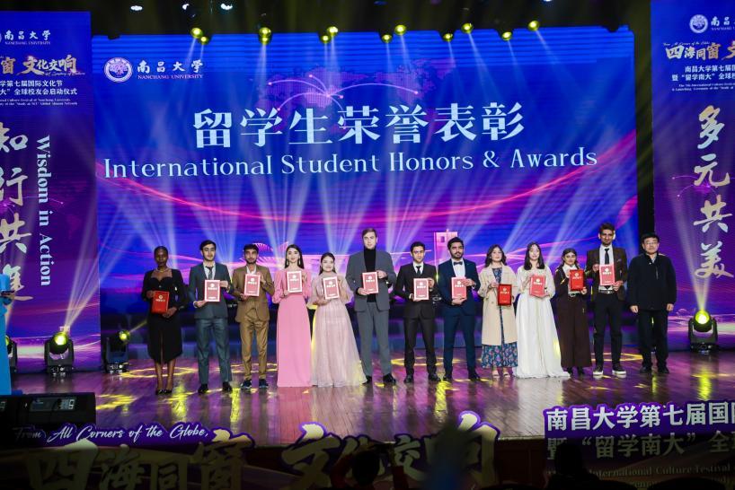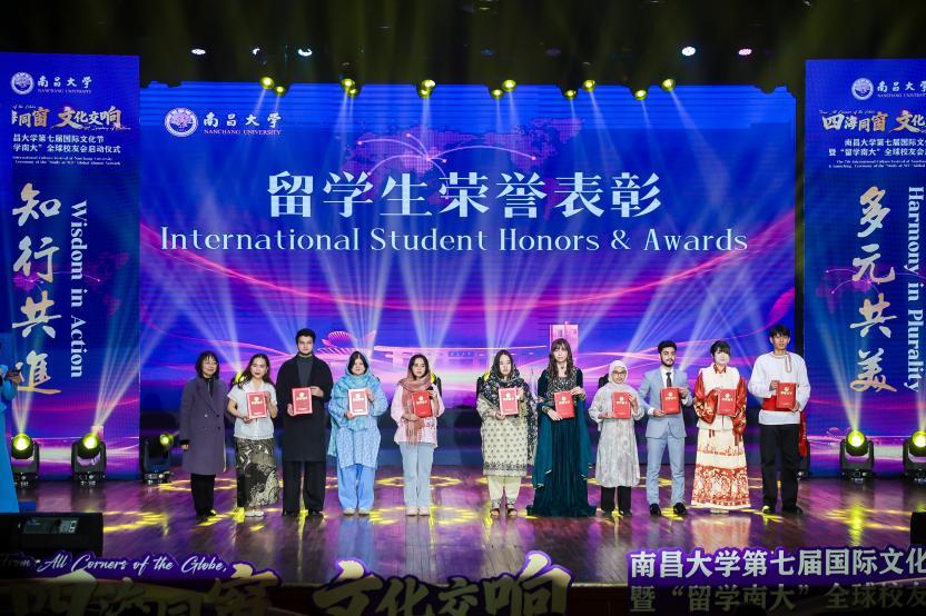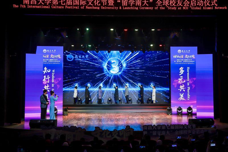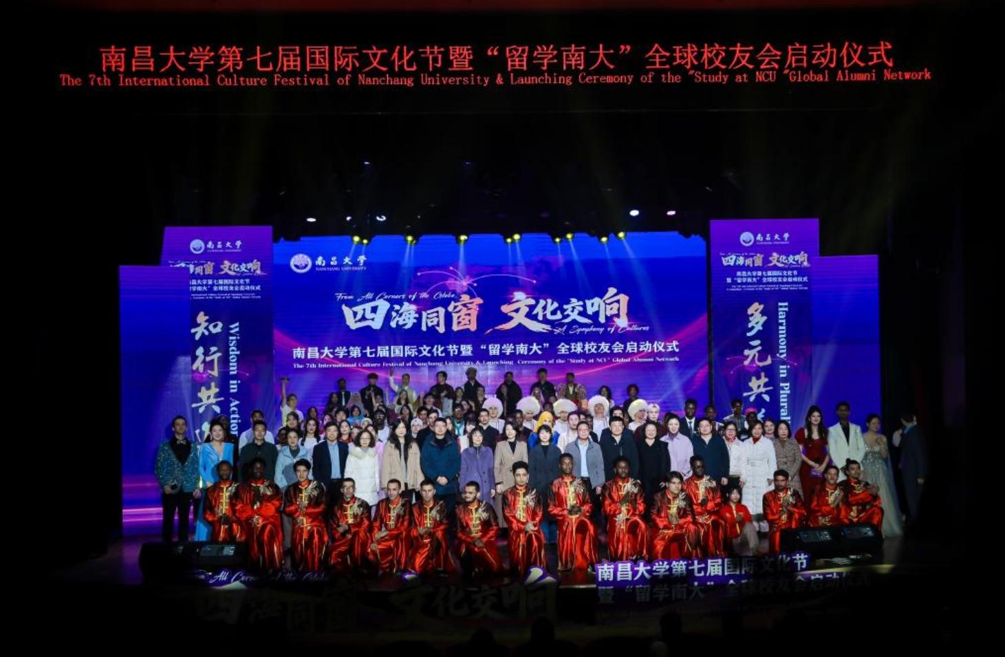 本网讯(国际教育学院 涂雅文)1月23日晚,南昌大学前湖校区音乐厅内掌声雷动、情谊涌动,以“四海同窗 文化交响”为主题的第七届国际文化节暨“留学南大”全球校友会启动仪式启幕。来自世界各地的学子、海内外校友代表与各界嘉宾齐聚一堂,在跨越国界的文化碰撞中,共赴跨文化视听盛宴,共启全球校友联结新篇。副校长平卫英、王立,江西省公安厅出入境管理总队总队长李瑜、副总队长刘峰等出席活动。