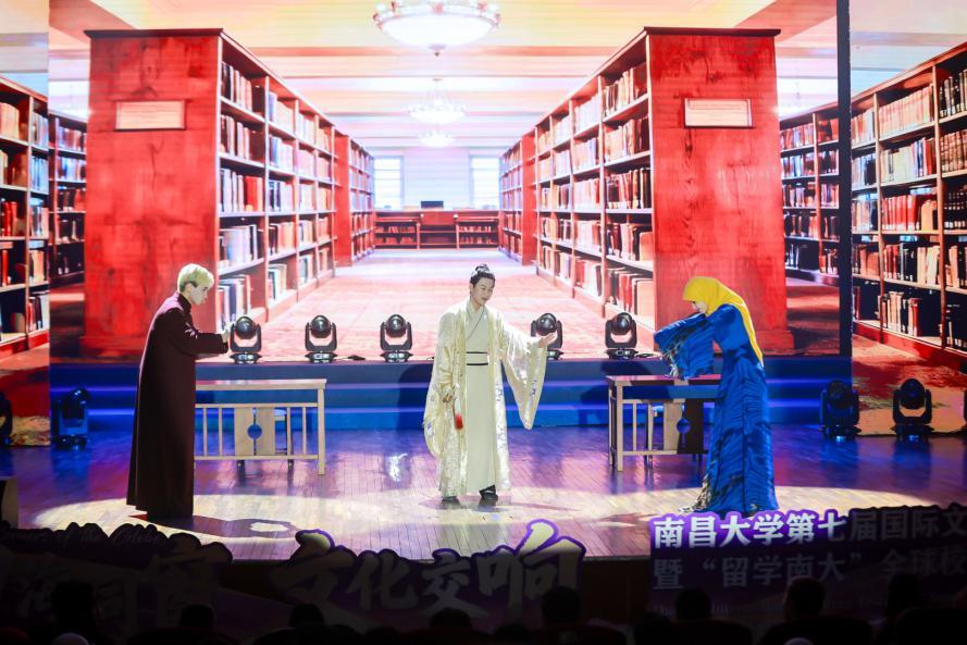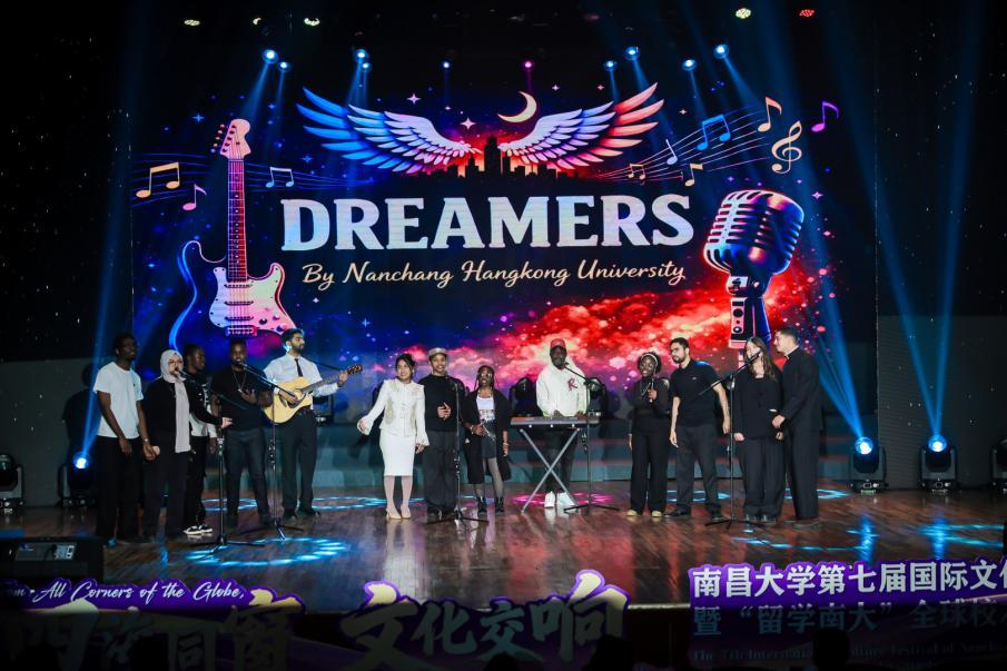 文艺展演环节亮点纷呈。啦啦操《青春同频》、歌曲串烧《一路生花》展现青春风采与成长希望;情景剧《越千年・语东西》创意搭建文化桥梁;舞蹈串烧《美美与共》融合多国风情,诠释“各美其美,美美与共”的内涵。南昌航空大学“一带一路”乐团的“Dreamers”、江西财经大学演绎的“I will always love you”,彰显音乐无国界的魅力。多语种祝福视频《心愿》传递温馨祝愿,三轮抽奖环节持续点燃现场气氛。