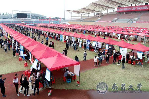 本网讯(记者涂金凤 学生记者曾宜奇)雨后的南昌大学静谧清新,前湖校区室外体育场却人头攒动、热闹非凡。11月3日上午,江西省2019届普通高校毕业生“互联网+”综合类专场就业招聘会在我校前湖校区室外体育场举行。会场内四处悬挂着大红条幅:“学在江西、留在江西,服务江西,发展江西”,“耕耘赣鄱大地,守望就业麦田”,“就地就近就业,利己利家利乡”,“留在江西,在赣鄱大地发光发热”……,营造着浓厚的鼓励毕业生留赣就业创业的氛围。