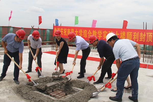 本网讯(记者许航)7月6日上午,学校综合教学实验大楼封顶仪式举行,校长助理李鸣与省发改委、江西中联建设集团有限公司、江西赣建监理工程建设监理有限公司、校后勤保障部相关负责人参加仪式。