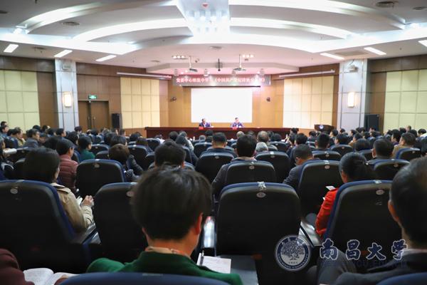 本网讯(记者许航、涂金凤)11月16日下午,学校党委在办公楼一楼报告厅召开理论学习中心组(扩大)会议,省纪委省监委案件审理室程新生主任应邀对新修订的《中国共产党纪律处分条例》(以下简称《条例》)作辅导报告,会议还传达了上级通知精神、学习了有关材料,并对校园安全稳定与环境整治工作进行强调,校党委书记喻晓社主持会议并讲话。
