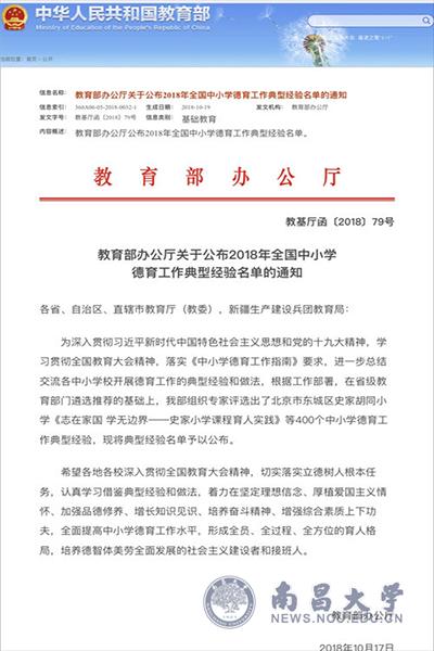 本网讯(附属小学)日前,教育部官网发布《教育部办公厅关于公布2018年全国中小学德育工作典型经验名单的通知》(教基厅函〔2018〕79号),公布了2018年全国中小学德育工作典型经验获奖名单。附属小学前湖分校的《在研学中收获 在收获中成长》在全国众多案例中脱颖而出,被评为全国中小学德育工作典型经验。