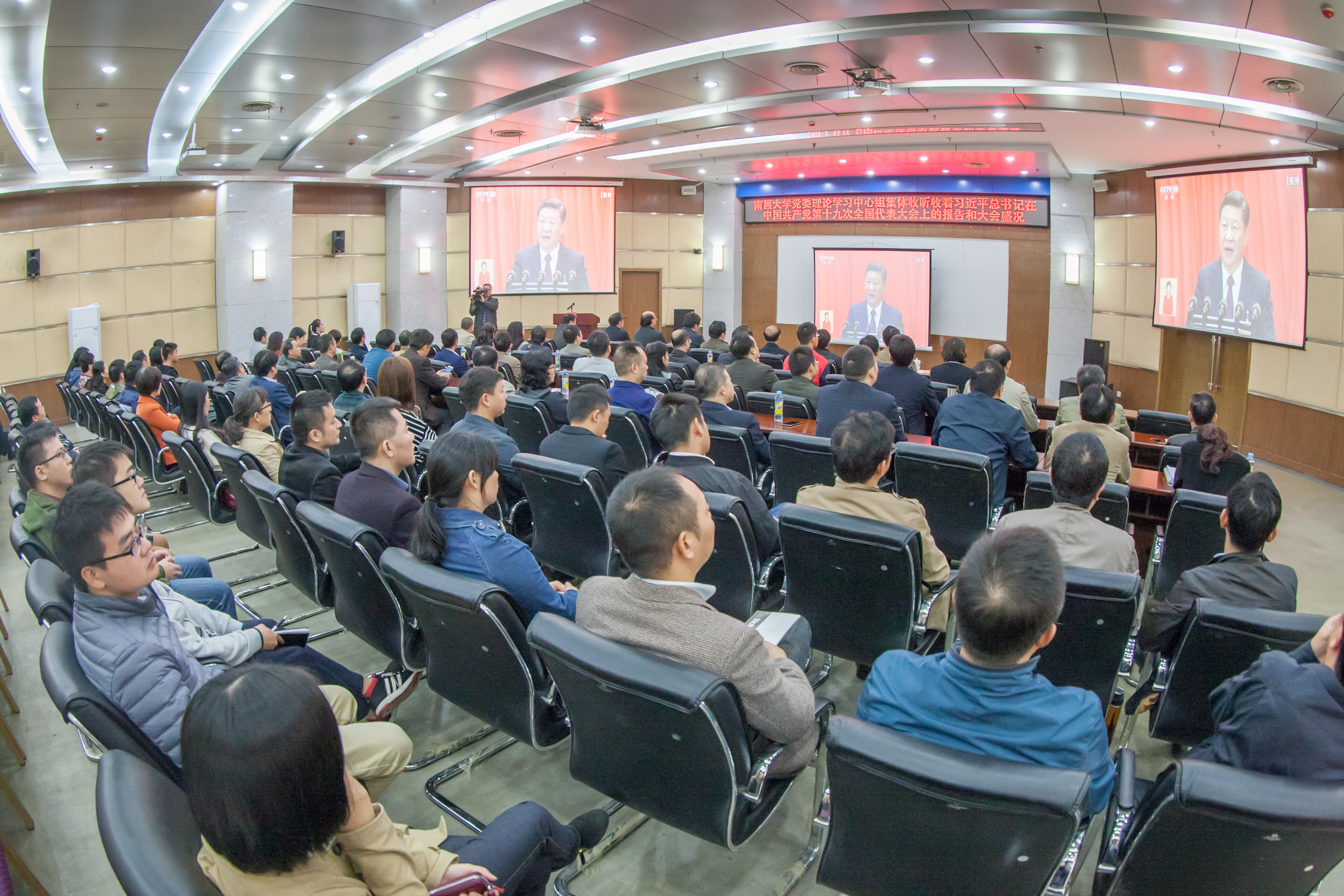 本网讯(记者许航)10月18日上午9时,中国共产党第十九次全国代表大会开幕会在人民大会堂大礼堂举行,习近平总书记代表十八届中央委员会向大会作报告。学校各级党组织第一时间通过电视、网络等多种形式,组织党员干部和师生收看大会实况,集中学习习近平总书记在大会上的重要讲话精神。