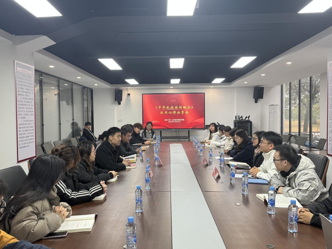 两校以《中华民族共同体概论》为共读书目,组织学生开展“同读一本书、共叙中华情”阅读分享活动,把教材“大道理”转化为身边“小感动”。2025年12月24日,气温骤降,寒风冬雨却丝毫未影响大家的热情,在南昌大学一站式学生社区,两校同学齐聚一堂,结合自身经历,畅谈读书感悟。从历史上各民族守望相助的动人典故,到身边不同民族学生间互帮互助、共同成长的鲜活故事,从个人成长与民族发展的紧密关联,到青年一代肩负的民族复兴使命,大家在交流中凝聚了团结共识,增进了民族情感。