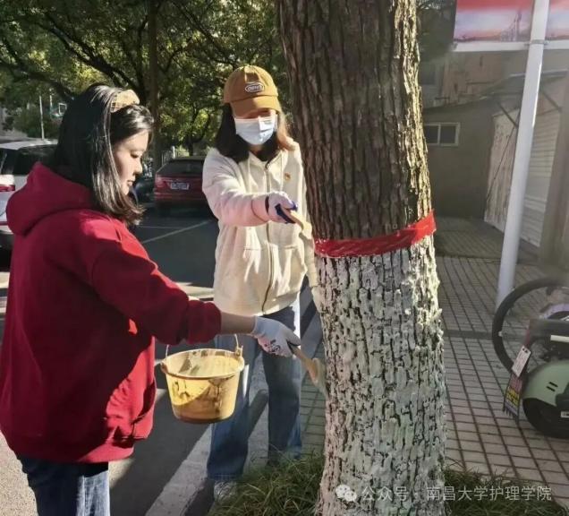 本网讯(后勤保障处)近日,后勤保障处(后勤服务集团)园林与绿化服务中心精心策划,联合软件学院、护理学院以及知勤社社团的同学们,分别在前湖校区、青山湖校区、东湖校区同步开展“劳动励心智、实践促成长”树木刷白活动,进一步美化校园生态环境,筑牢树木冬季养护“防护墙”,切实将劳动教育融入学生成长实践。本次活动聚焦校园主干道及教学楼周边近千棵树木,让学生在亲身实践中掌握园林绿化养护知识,提升劳动技能,厚植生态保护理念。