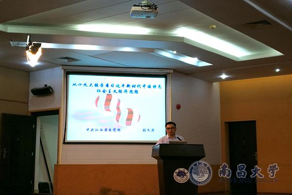 7月9日上午,理学院在法学楼报告厅举办了题为“从十九大报告看习近平新时代中国特色社会主义经济思想”的讲座。江西省委党校经济研究所副所长、《领导论坛》执行主编张文君博士受邀为学生解读中国特色社会主义经济。张文君从“建设现代化经济体系”在十九大报告中的位置、对“现代化经济体系”基本框架的解读以及结合个人工作实际谈启示等方面阐述了对习近平新时代中国特色社会主义经济思想的研究。