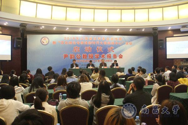 本网讯(记者涂金凤)10月30日上午,由省委宣传部、省社联联合主办,我校承办的2018年江西省社科普及宣传周暨“百名理论专家进新时代文明实践中心”活动在我校举行。省委宣传部副部长、省委外宣办(省政府新闻办)主任罗勇兵,省社联党组成员、副主席刘弋涛,我校江西发展研究院院长黄细嘉出席启动仪式,中国社会科学院研究员尹韵公教授作首场讲座,省社联党组成员、副主席汤水清主持仪式。