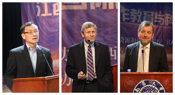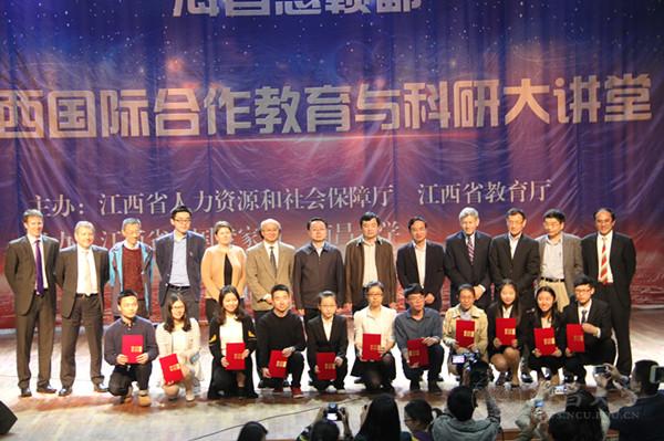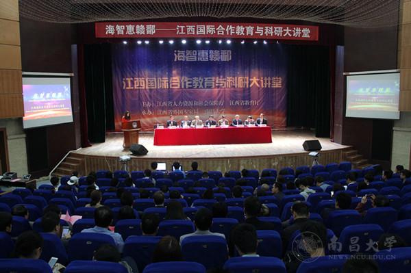 本网讯(记者易有斌)4月24日,“海智惠赣鄱——江西国际合作教育与科研大讲堂”活动在我校前湖校区音乐厅举行。本次活动由江西省人力资源和社会保障厅、省教育厅主办,省外国专家局、南昌大学承办。江西省人社厅党组成员、副厅长吴福全,省委教育工委副书记、省教育厅副厅长喻晓社,我校党委书记胡永新,副校长朱友林等出席活动。