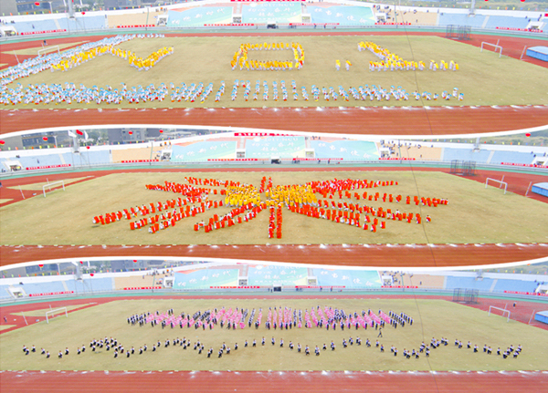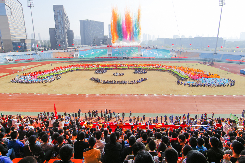 开幕式大型团体操表演分为“不忘初心”“继续奋斗”“传承超越”和“争创一流”四个篇章,来自信息工程学院学子及各学生社团的2200余名朝气蓬勃的学子,合着激情飞扬的节拍,在操场上热情奔跑、挥洒汗水、组合图案,展现了新时代大学生饱满的精、气、神,与青年学子蓬勃的朝气,现场观众的热情在创意新奇、美轮美奂的表演中点燃,掌声欢呼声络绎不绝。开幕式在艺术与体育完美结合的表演中落下帷幕。