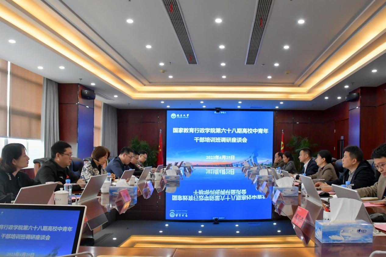 本网讯(记者杨嘉仪 周嘉玲)4月25日下午,国家教育行政学院第六十八期高校中青年干部培训班一行来校调研。副校长吴丹主持调研座谈会。