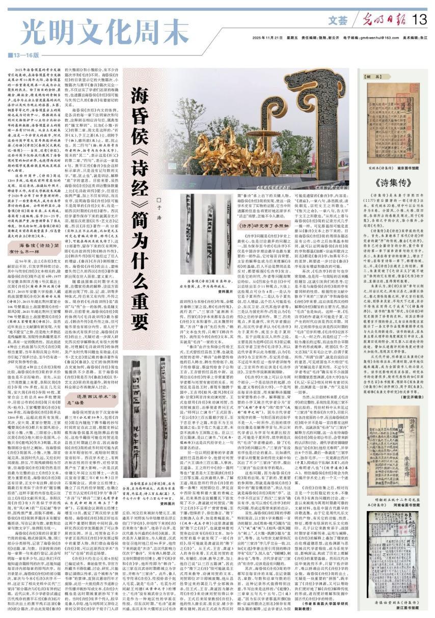 编者按:11月21日,《光明日报》以《海昏侯〈诗经〉简为什么重要》为题,刊发南昌大学国学研究院于浩副教授署名文章,解读海昏侯墓出土《诗经》简的核心价值。详情如下: