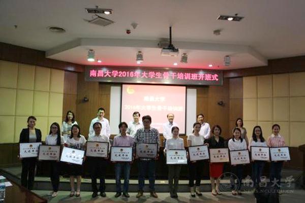 本网讯(学习记者吴怡颖、袁晟玥、张悦)5月4日下午,南昌大学2016年大学生骨干培训班开班仪式在行政楼一楼报告厅举行。校党委书记胡永新、党委副书记徐求真、校长助理李培生、党委组织部部长舒明出席开班仪式。