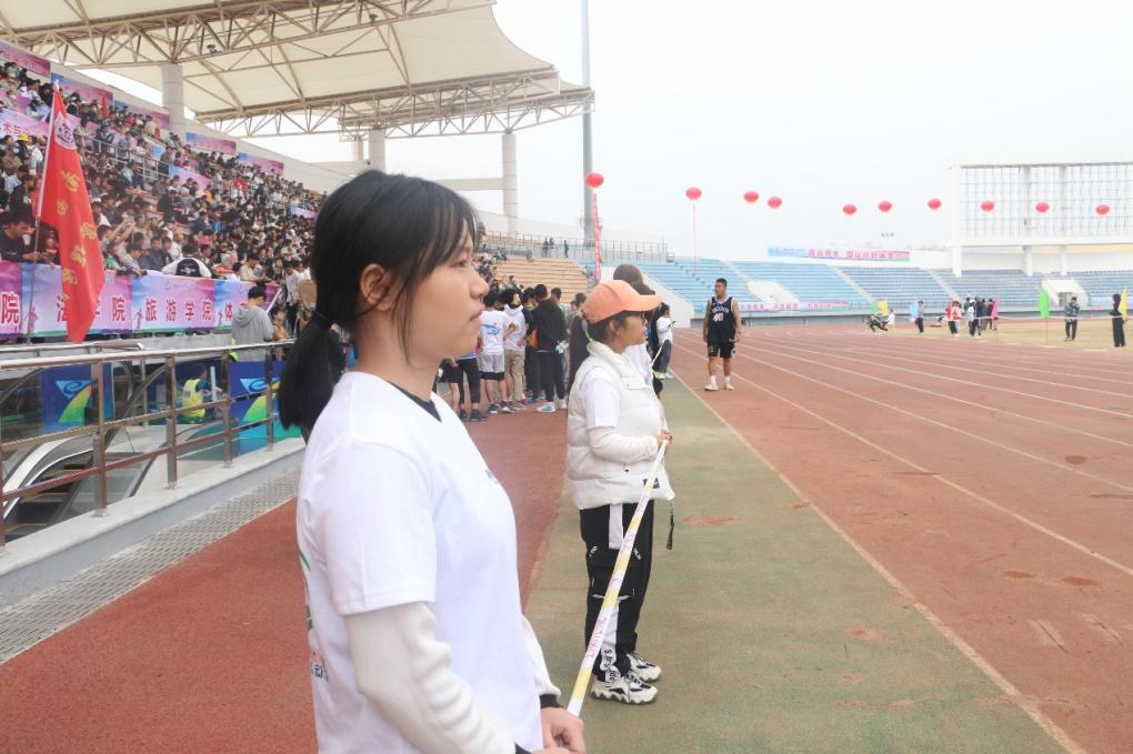 “热情、负责、认真”——志愿者刘若琰一直秉持志愿精神,负责维持田径场的秩序。当运动员在赛道上飒沓疾驰时,他们忠于职守,默默坚守在跑道外,为运动员保驾护航。