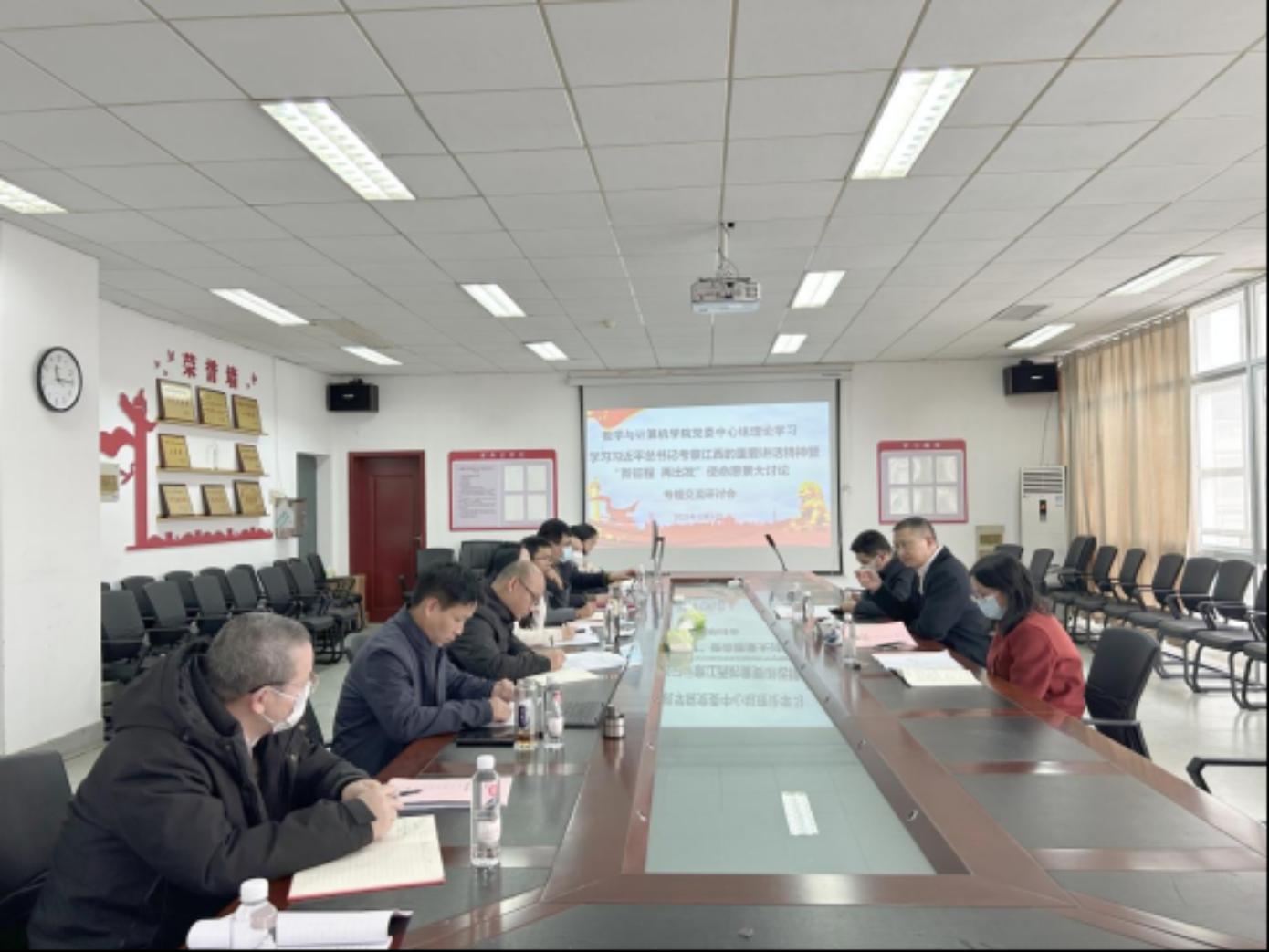 学院班子成员围绕《数学与计算机学院“新征程、再出发”使命愿景红皮书(初稿)》展开讨论。数学与计算机学院从10月份以来,以学习贯彻习近平总书记考察江西重要讲话精神为主线,紧紧围绕学校“新征程、再出发”使命愿景大讨论具体部署,结合学院人才培养、学科发展、科学研究、社会服务等方面重点难点问题,广泛动员、深入讨论,在学院教授委员会、青年教职工、教研室、党支部等层面开展了20余场大讨论,形成了学院使命愿景红皮书初稿。