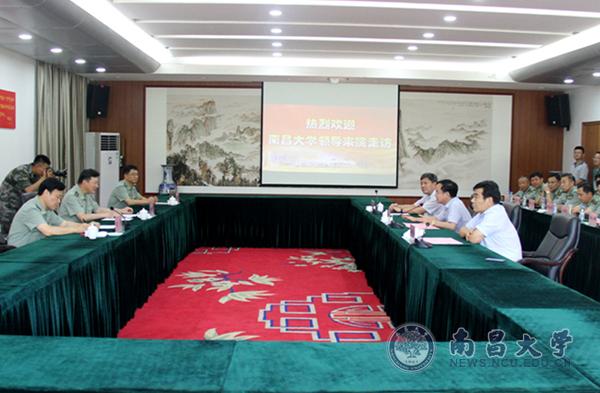 本网讯(记者刘磊)酷暑难敌军民鱼水情深,八一建军节前夕,7月18日下午,校党委书记喻晓社、校长周创兵、校党委副书记黄恩华一行来到陆军步兵学院走访慰问,为官兵送上夏日的清凉和节日的祝福,并同陆军步兵学院院长徐金华、政治委员刘勇、副政治委员张玉库等一起座谈交流。