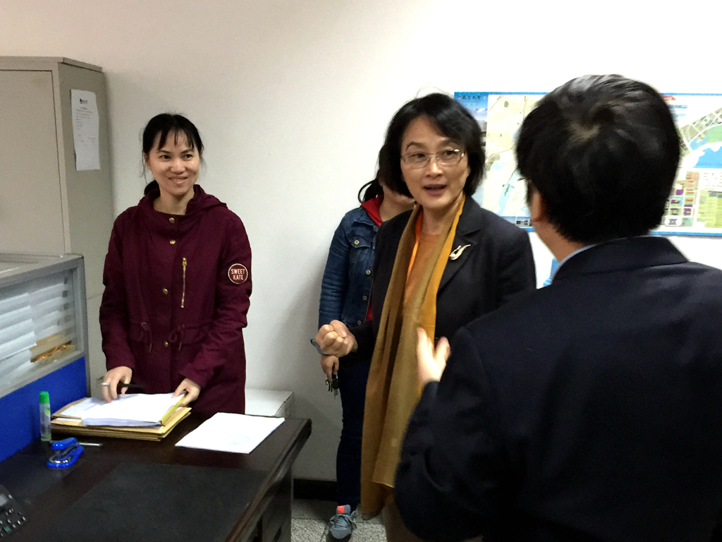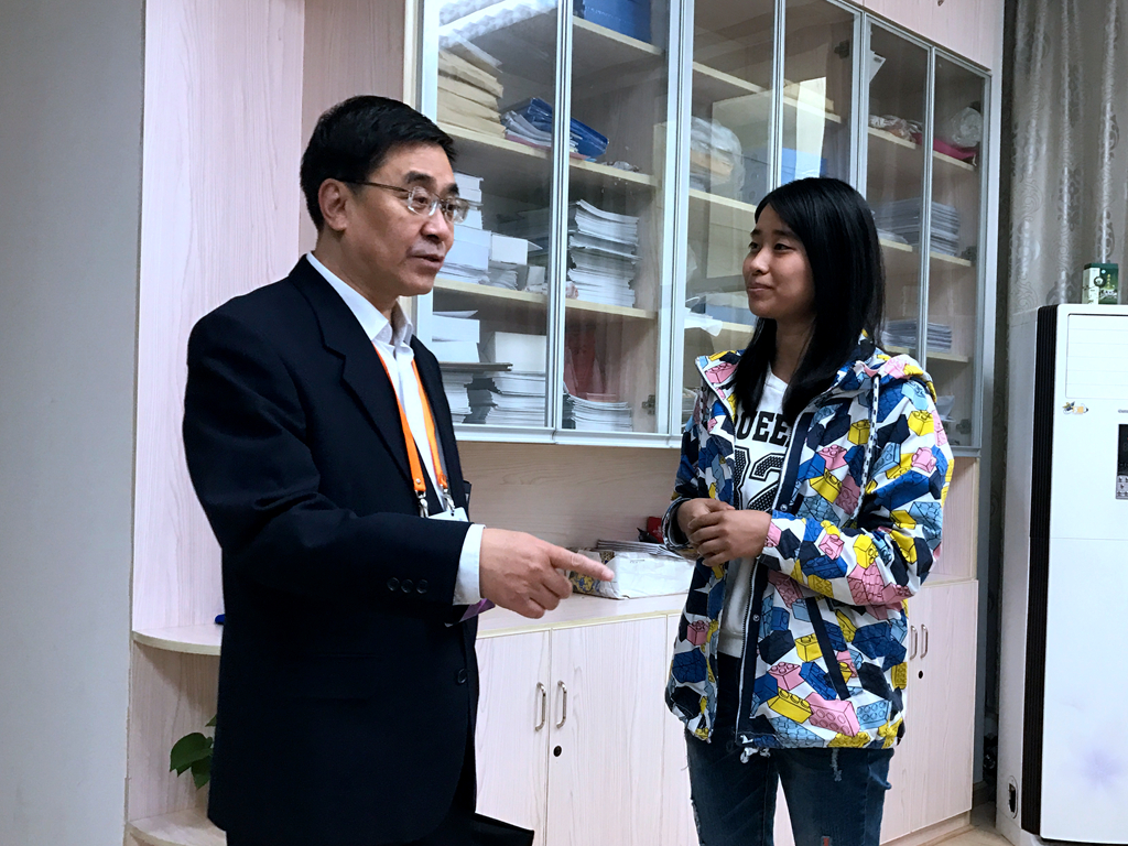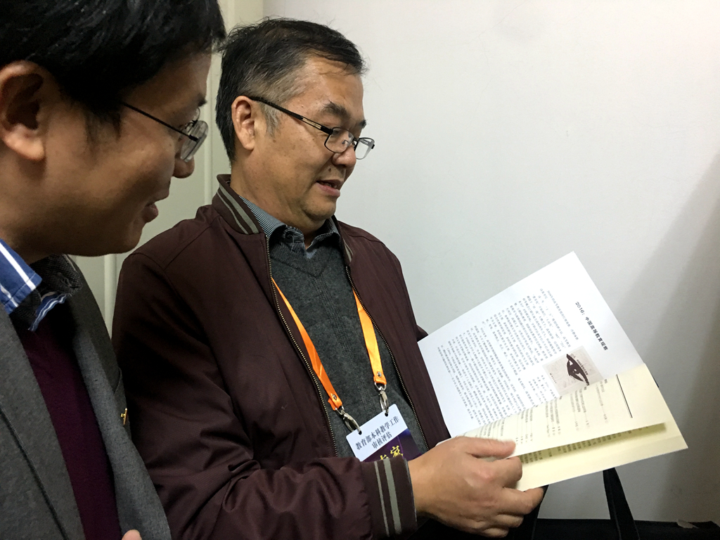 专家组成员卢晓中走访考察体育与教育学院,查看资料