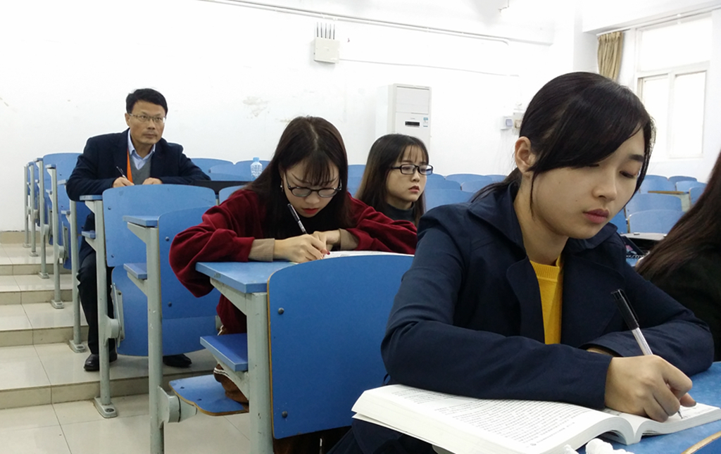 专家组成员卢现祥在外经楼102听付智老师《经济思想史》课