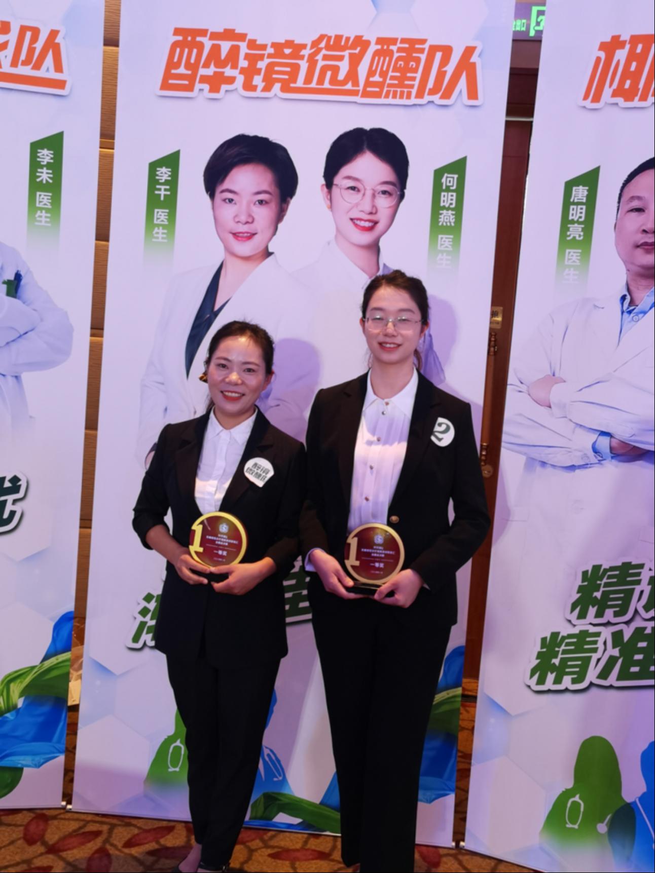 李干和何明燕组成的“醉镜微醺”战队,通过病例分析,分享了临床实践经验,深入探讨无痛诊疗在实际应用中的优势和挑战,演讲内容丰富、观点鲜明,既充分体现了多学科团队的协作精神,又展现了一附院在无痛诊疗方面的精湛技术和高水平专业素养,得到了观众和评委们的一致认可。