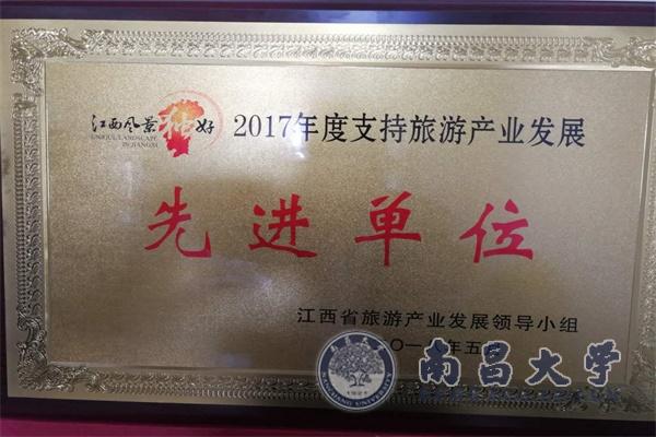 本网讯(旅游学院)5月8日上午,由中共江西省委、江西省人民政府主办的全省旅游产业发展大会在抚州举行。南昌大学江西发展研究院院长黄细嘉代表学校出席大会。南昌大学等25家单位获评为2017年度全省支持旅游产业发展先进单位。