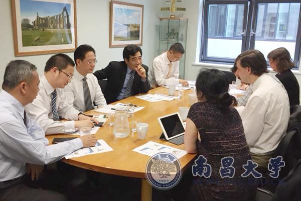 伦敦玛丽女王大学全体校领导及中英项目负责人与我校代表团进行了会谈, 双方一致同意在现有的中英临床医学(生物医学)合作办学项目的基础上拓展到其他专业的合作办学,并讨论了联合建立科研中心、医务人员赴伦敦玛丽女王大学培训以及中英合作提升南昌大学高端人才(如博士生等)培养计划等事项。双方签署了合作协议。