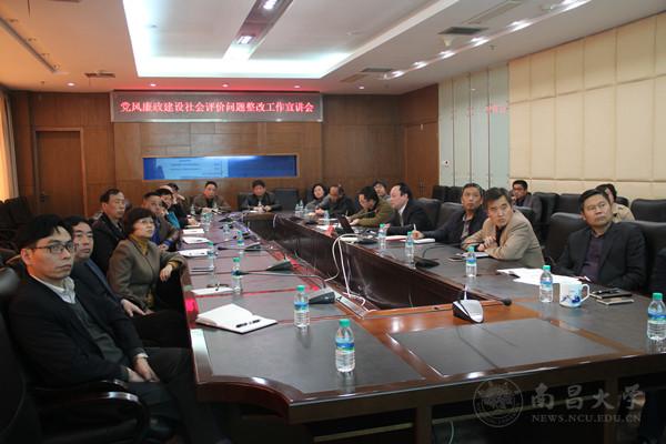 江风益围绕《齐心协力,做好党风廉政建设社会评价工作》这一主题,从社会评价是什么、学校党风廉政建设做了什么、学校的社会评价结果是什么、学校准备怎么办、我们应该做什么等方面进行了宣讲,客观分析了学校前几年的社会评价结果,希望大家充分认识开展党风廉政社会评价工作的意义和重要性,把学校党风廉政建设社会评价工作的各项要求落实到位,做到聚焦核心问题不散光,着力解决问题不拖延,坚持持久整改不松懈,提振社会和师生信心。