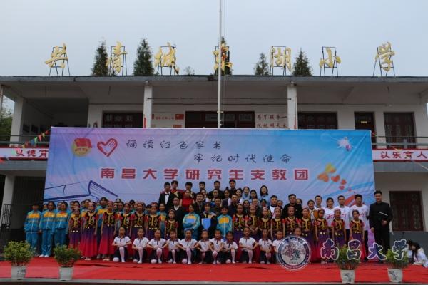 南昌大学研究生支教团成立于2005年,今年6月19日,“老阿姨”龚全珍为研支团授旗“南昌大学龚全珍研究生支教团”。自2005年以来,研支团先后派遣了十三批支教队伍,共123名志愿者赴江西广昌、共青、瑞金等开展了形式多样、内涵丰富的帮扶活动,为对口学校成立了儿童管乐团、少年宫、留守儿童之家,开展了心理辅导、课业辅导、艺术普及、经济资助等志愿服务活动,从思想、生活、心理、综合素质等多层面、全方位促进学生健康成长。在赣鄱红土地上进一步弘扬了志愿服务精神、传播理想信念,在祖国大地上续写了南昌大学人情系社会、敢于担当、甘于奉献的家国情怀。