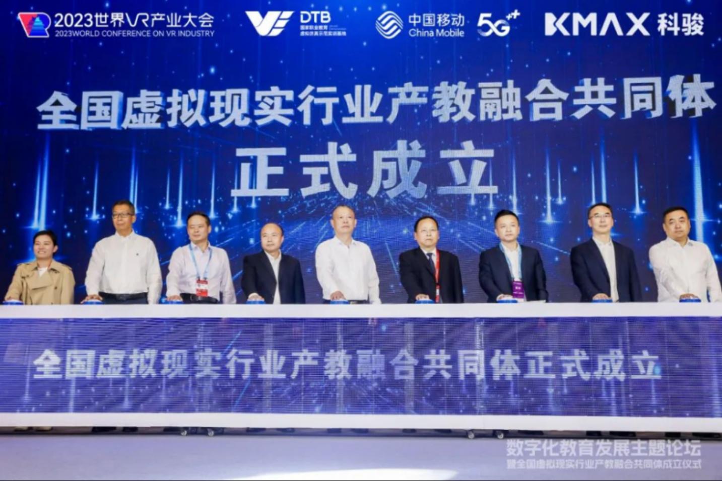 在数字化教育发展主题论坛上,在江西省教育厅、工信厅、各参与单位领导的见证下,由我校联合江西科骏实业有限公司、国家职业教育虚拟仿真示范实训基地、中移(江西)虚拟现实科技有限公司、九江职业技术学院牵头,联合高校、职业院校、科研机构、上下游企业、行业组织等143家单位共同组成的全国虚拟现实行业产教融合共同体正式成立。副校长吴丹出席成立仪式。