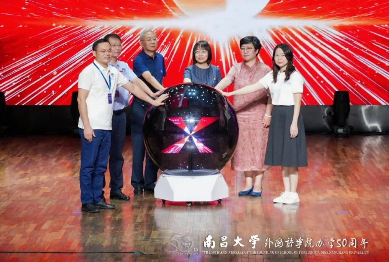 本网讯(外国语学院)金秋送爽,赣水含章;家国同庆,弦歌朗朗。10月3日,外国语学院办学50周年庆典在前湖校区举行。学校领导、退休教师、历任院领导、海内外校友和在校师生欢聚一堂,共叙桃李情深,共庆发展硕果,共绘未来蓝图。副校长平卫英出席活动。