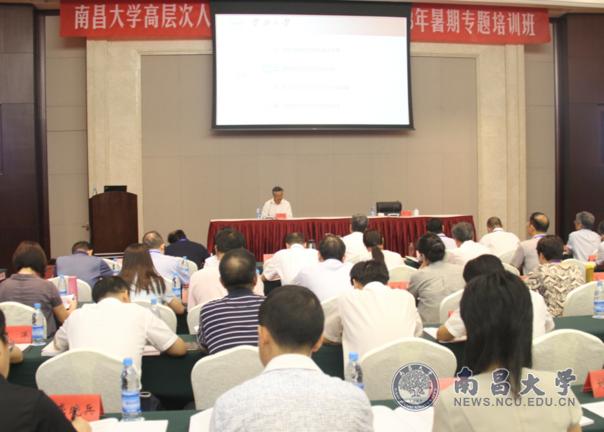 本网讯(记者易有斌)8月27日下午,国家“万人计划”领军人才(哲学社会科学领军人才)人选、历史学博士、博士研究生导师、云南省委委员、云南大学校长林文勋教授应邀来校,为南昌大学高层次人才、处级干部能力提升暑期专题培训班学员作“双一流”建设专题辅导报告。校纪委书记黄云主持报告会。