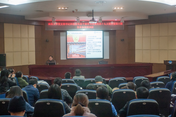 本网讯(记者许航)11月21日下午,南昌大学学习贯彻党的十九大精神暨第三期党务知识培训班在办公楼一楼报告厅举行。本次培训由校党委组织部(党校)、校党委宣传部共同主办,校内200余名党支部书记和基层党务干部参加培训。