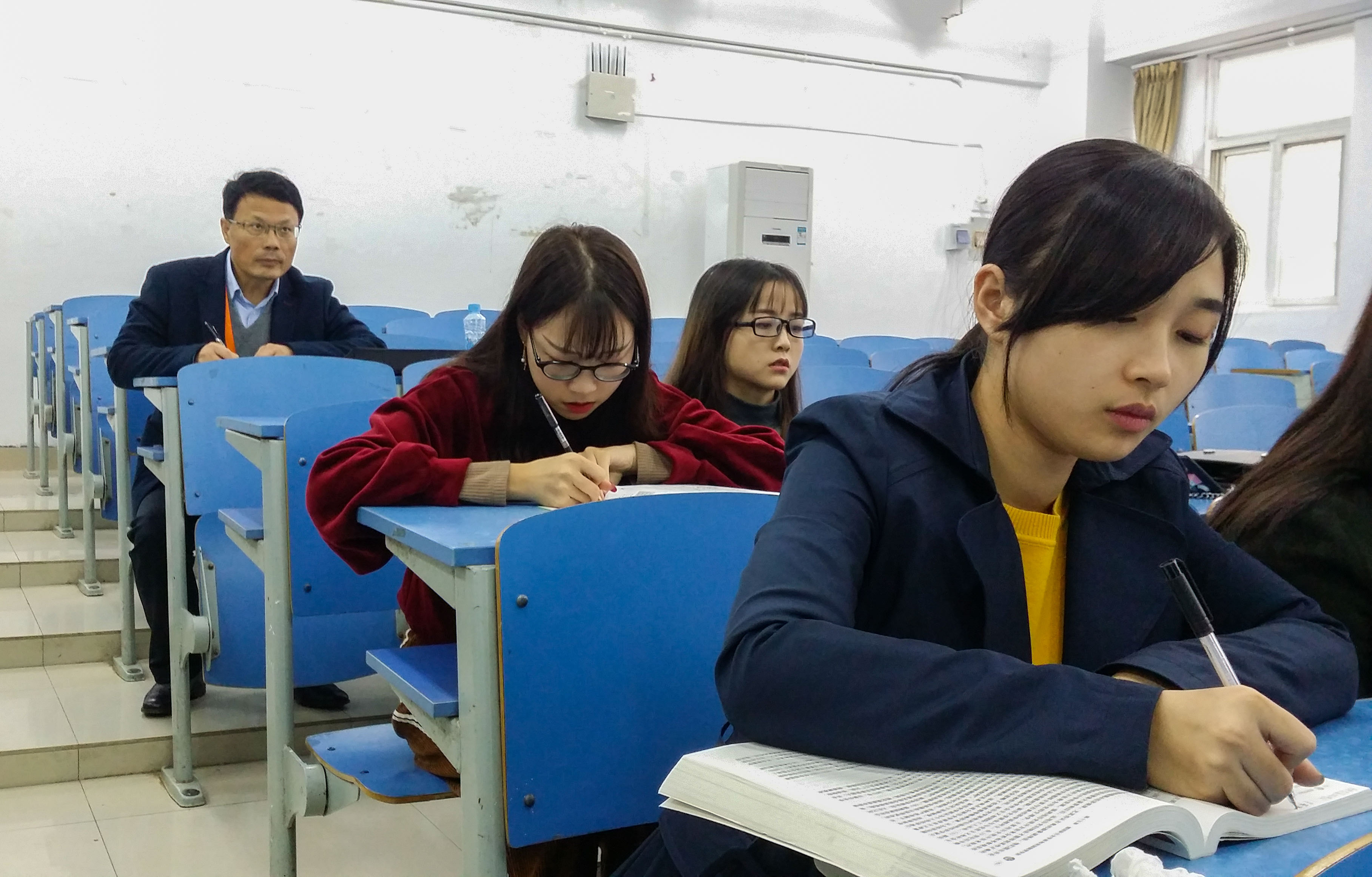 专家卢现祥在外经楼102教室听《经济思想史》课程。