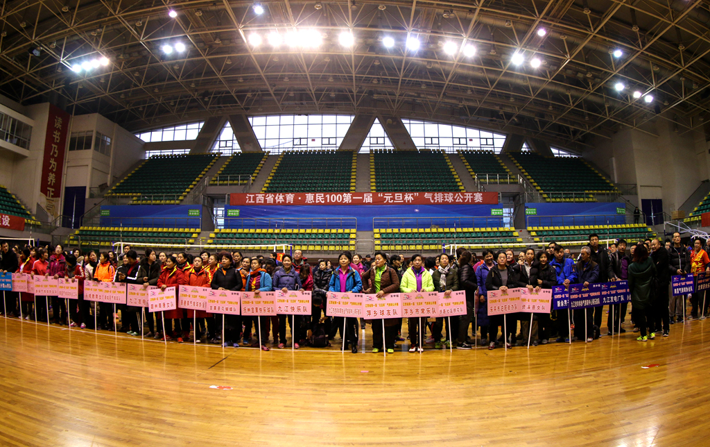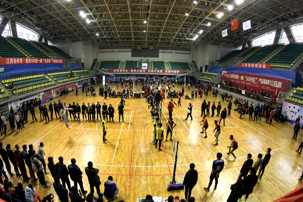 本网讯(学生记者格桑拉姆)2017年12月30日—2018年1月1日,江西省第一届“元旦杯”气排球公开赛在我校体育馆举行。来自江西省各地区,不同年龄段的98支队伍1000余名气排球爱好者共同参与。