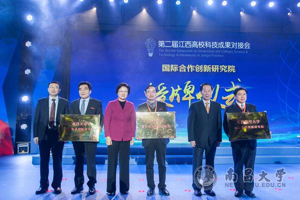 开幕式上举行了国际创新研究院授牌仪式,颁发了国际创新研究院引进人才聘书,举办了校企科技合作签约仪式。省人大常委会副主任冯桃莲、省政协副主席刘晓庄、教育部科学技术司司长雷朝滋为国际合作创新研究院授牌,我校党委书记喻晓社、校长周创兵代表学校接牌。