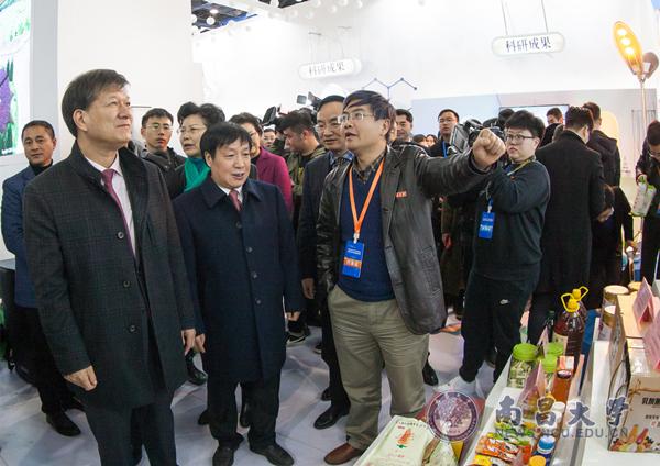 在南昌大学科技成果展区,我校食品科学与技术国家重点实验室、国家硅基LED工程技术研究中心、水产动物遗传育种与健康养殖学研究室、国家大学科技园、创新创业学院等单位的科技创新成果纷纷亮相,包括“金黄光LED应用”“星载无线电等离子体探测系统”“压磁型柔性力敏薄膜---传感器”“微纳米稀土化合物与先进系统陶瓷制造”等涉及信息、材料、食品、生命、化学几大领域共22个科研成果。陈兴超、孙菊生等领导和嘉宾先后来到我校展区参观。