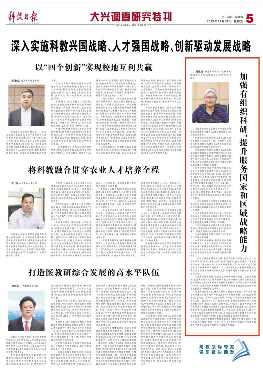 编者按:12月29日,科技日报主题教育系列报道以《加强有组织科研,提升服务国家和区域战略能力》为题,聚焦南昌大学加强有组织科研,提升服务国家和区域战略能力。详情如下: