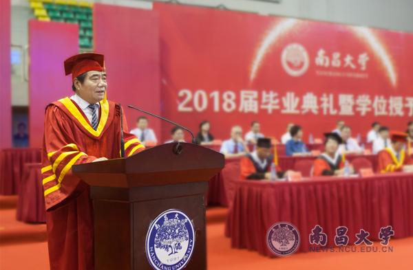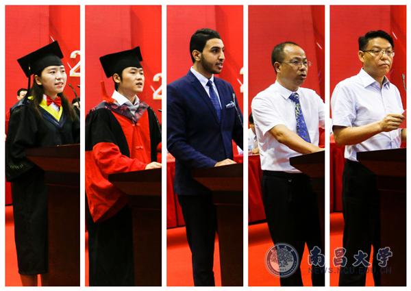 副校长辛洪波、江西发展研究院院长黄细嘉先后宣读《南昌大学关于2018届毕业生准予毕业和授予学位的决定》《中共南昌大学委员会关于表彰南昌大学首届“五四风华奖”获奖个人和团队的决定》。