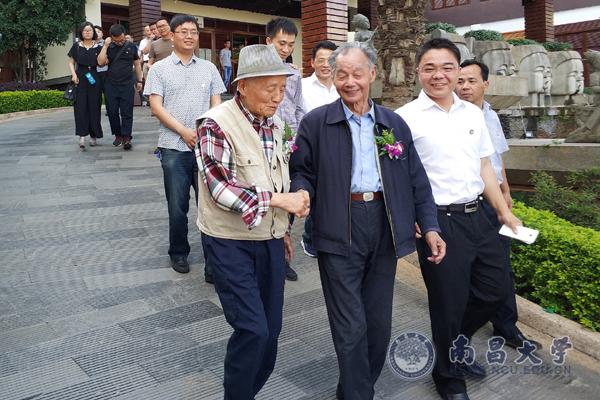 两位年过八旬的60级老校友也来到了大会现场,黄恩华向二老表达了崇高的敬意。他深情地说道:“你们走过的路程,是我们宝贵的精神财富。我们要继承好,传承好,把我们南大精神写在云南,写在江西,写在我们新的时代的现代化强国建设的大地上。”