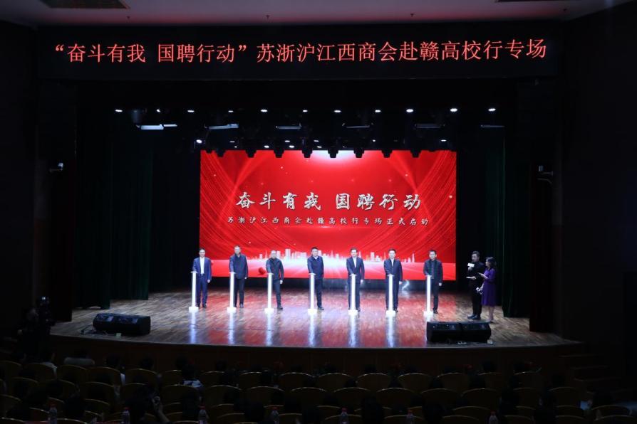 本网讯(记者 程慧萍)12月29日,由政府、高校、商会和企业共同参与的“奋斗有我 国聘行动”苏浙沪江西商会赴赣高校行活动在南昌大学前湖校区举行,活动旨在为即将毕业的学生提供就业机会,助力江西稳就业、保民生。江西省教育评估监测研究院党委书记刘静俭,南昌大学党委副书记刘耀彬,苏浙沪江西商会会长陈明宇、程栋、杜桂华和企业代表,高校代表等共同参与此次活动。