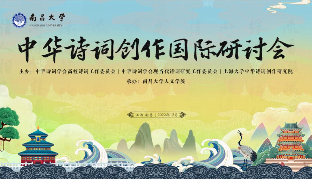 本网讯(人文学院凌云)12月3日,首届“中华诗词创作国际研讨会”在江西南昌召开。本次研讨会由中华诗词学会高校诗词工作委员会、中华诗词学会现当代诗词研究工作委员会、上海大学中华诗词创作研究院共同主办,我校人文学院承办。会议以线上线下相结合的方式进行,通过腾讯会议、南昌大学微信视频号向社会公众现场直播。