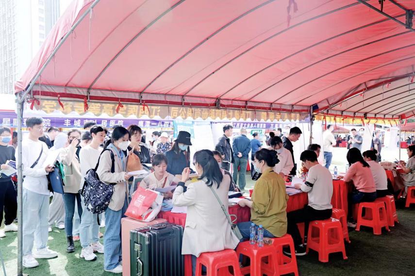 本网讯(招生与就业工作处 贾蓓蓓 黄琪)为贯彻落实党中央、国务院关于做好“稳就业”“保就业”的决策部署,4月15日上午,我校在东湖校区举办南昌大学2023届毕业生医学类专场春季双选会。