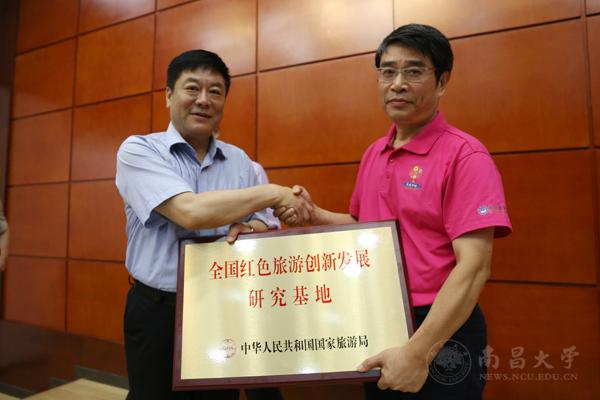 本网讯(通讯员龚志强)为贯彻落实习近平总书记关于红色旅游发展的重要讲话精神,务实推进红色旅游创新发展,9月5日,由国家旅游局主办的“全国红色旅游创新发展研究基地”授牌仪式暨红色旅游创新发展座谈会在南开大学举行。国家旅游局副局长、全国红色旅游工作协调小组副组长兼办公室主任魏洪涛出席会议并讲话。本次会议上,南昌大学和南开大学、井冈山大学、延安大学等4所高校被授予“全国红色旅游创新发展研究基地”牌,加上去年被授牌的湘潭大学,目前全国共有5所高校被评为“全国红色旅游创新发展研究基地”。南昌大学江西发展研究院院长黄细嘉接受授牌。