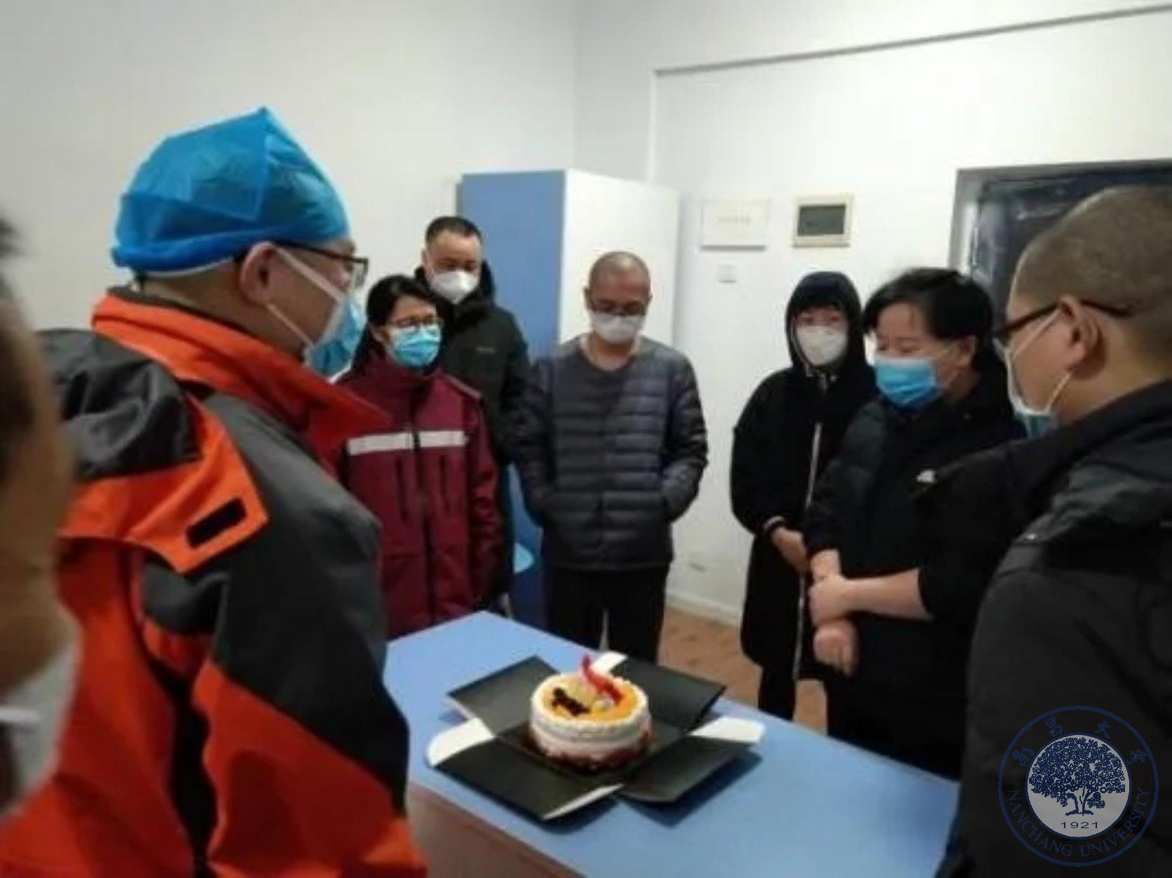 特殊生日,温暖抗疫。2月21日,是队员翁文轩的24岁生日,党支部克服困难,在有限的条件下和她一起度过了这个难忘的生日,牛凡书记代表全体队员祝她生日快乐,并希望大家互相关爱,让抗“疫”战斗集体更温暖。