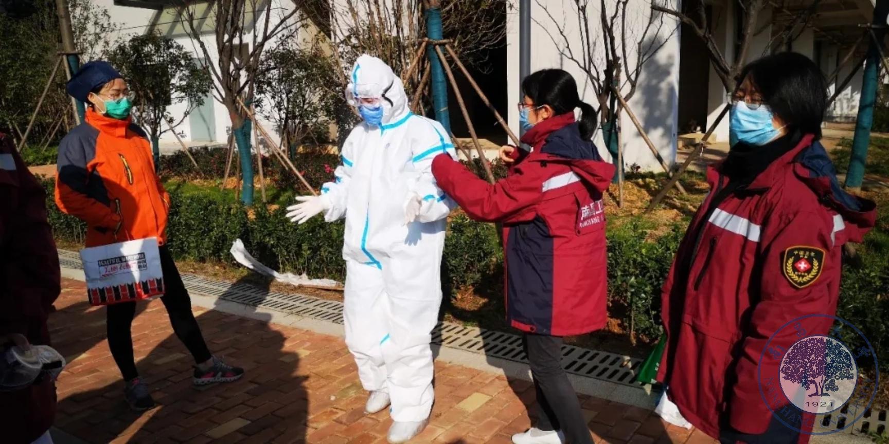 院感培训,科学防控。为了让大家尽快投入到抗疫的战斗中,同时让大家充分准备,保障防护,临时党支部邀请江西省首批援鄂医疗队领队王卓处处长,队长祝新根及北京大学第一医院感染科李六亿主任前来驻地指导消杀知识,培训防控注意事项。随后,临时党支部组织医疗队进行了严格的防护培训,并做到人人考核过关。