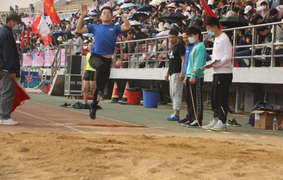 他们的意志坚韧不拔,他们的步伐铿锵有力,他们的眼神锐利如鹰,助跑、起跳、落地,一气呵成,让人不敢稍加移目,唯恐错过全场。扬起的飞沙、错落的足坑,是他们成绩的证明,是不懈锻炼的成果,更是全民运动的生动诠释。