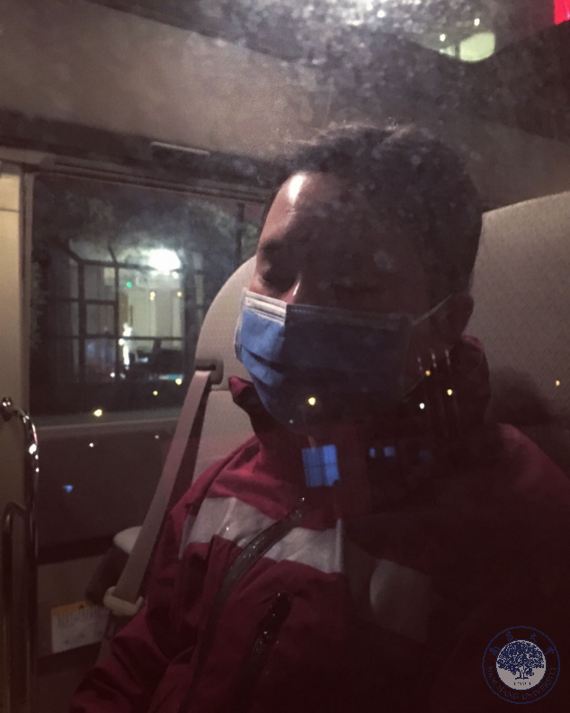 输液架临时化作旗帜,带领患者去做核酸和CT检查